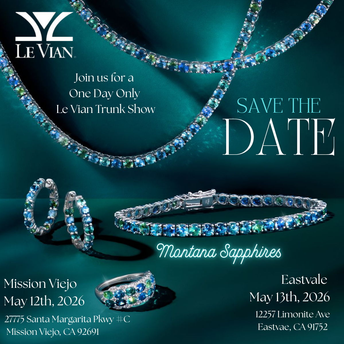 Snag your spot for the dazzling Le Vian Pop-Up Event at Gemmas Jewelers! Catch the sparkle on May 13th in Eastvale and May 14th in Mission Viejo! ✨